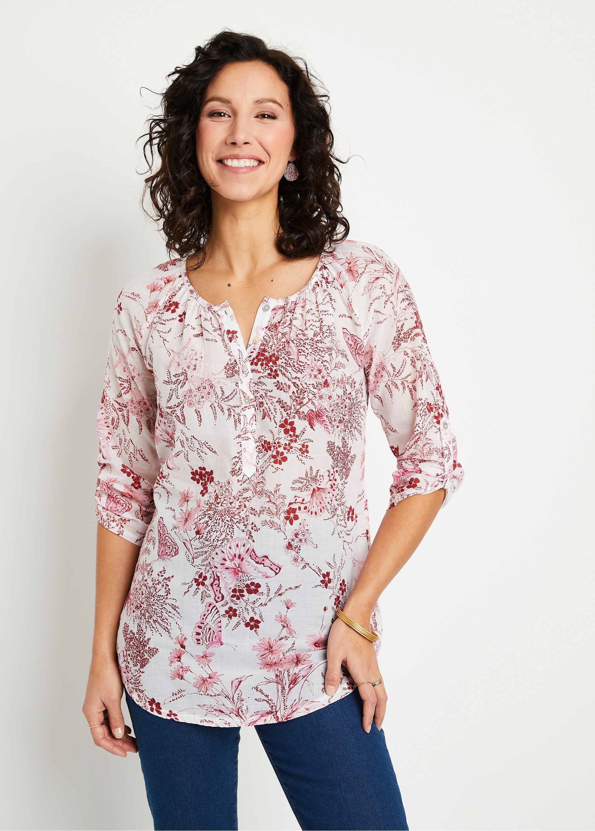 Loose_buttoned_tunic_with_printed_veil_White_and_pink_FA1_slim Loose_buttoned_tunic_with_printed_veil_White_and_pink_DO1_slim