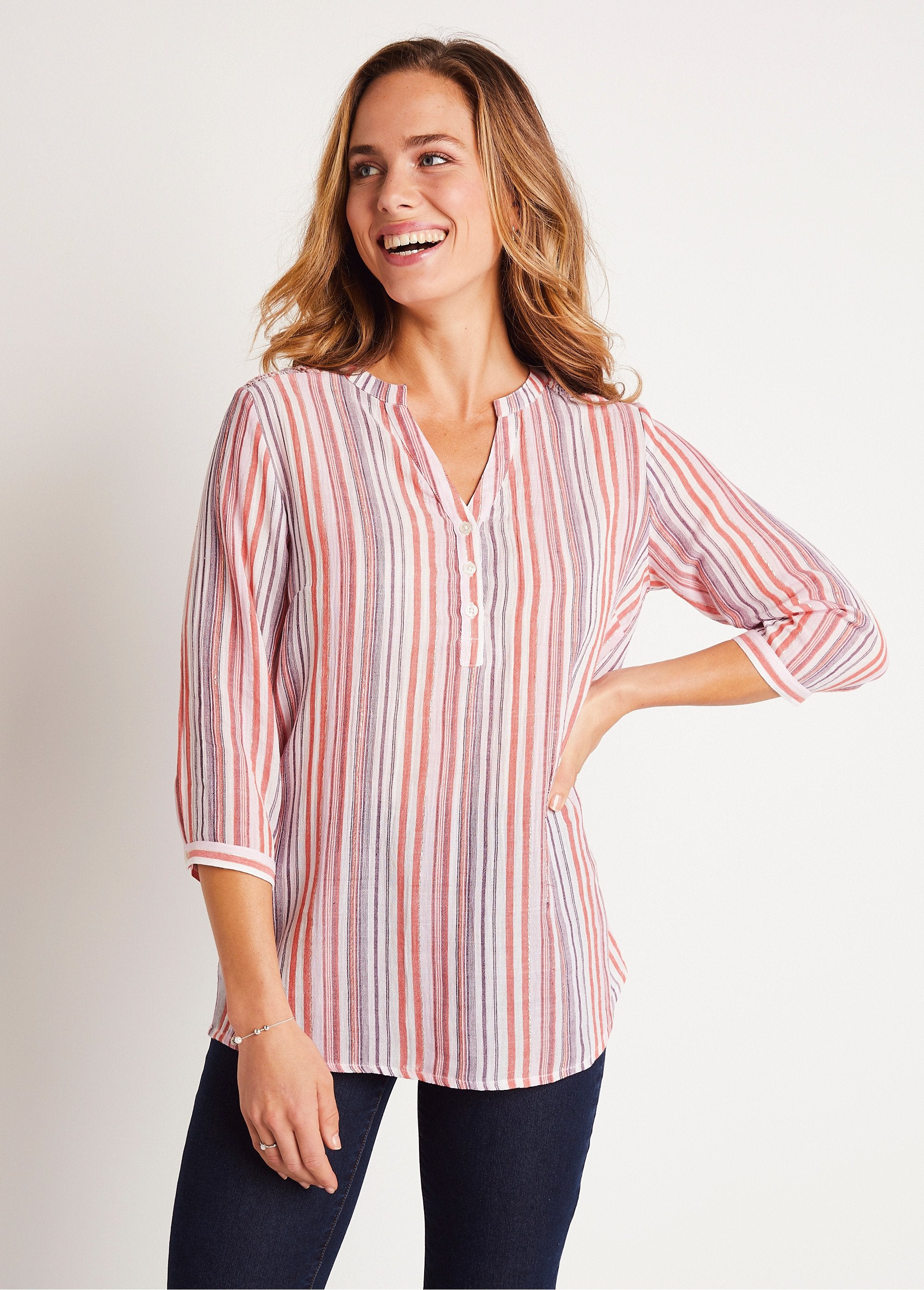 Women’s tunics have become a staple of contemporary fashion. Available in a variety of styles and sizes, there’s something for everyone. Whether you opt for a sleeved tunic for cooler days or a printed tunic to add a pop of colour to your outfit, the options are endless. Paired with jeans or leggings, these tunics offer a flattering yet stylish silhouette that’s suitable for any occasion, from Monday to Saturday. Blouses and tunics also pair beautifully together to create a smart-casual look.