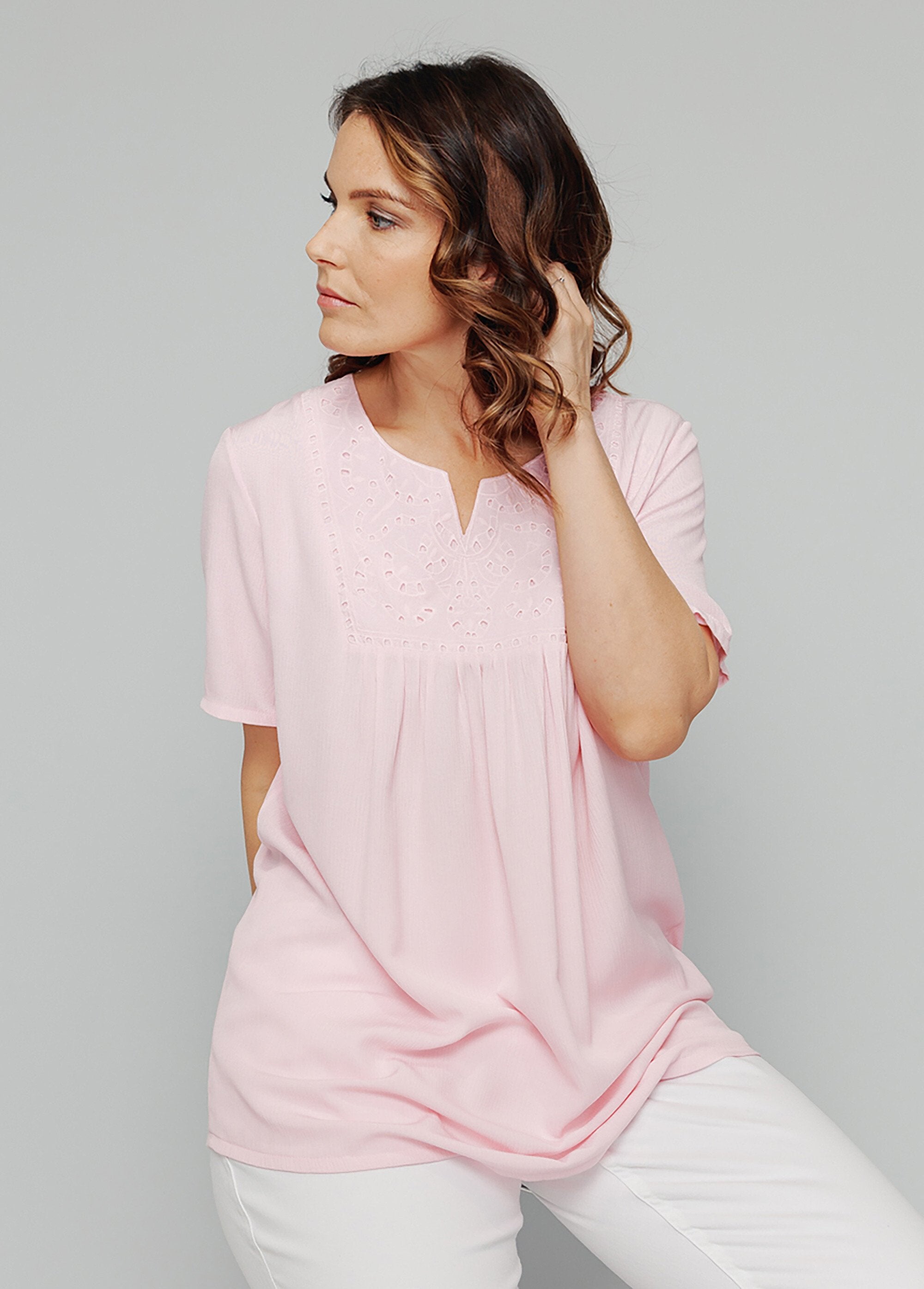 Long_short-sleeved_top_with_round_neck_embroidery_Ecru_FA1_slim Long_short-sleeved_top_with_round_neck_embroidery_Ecru_FA2_slim