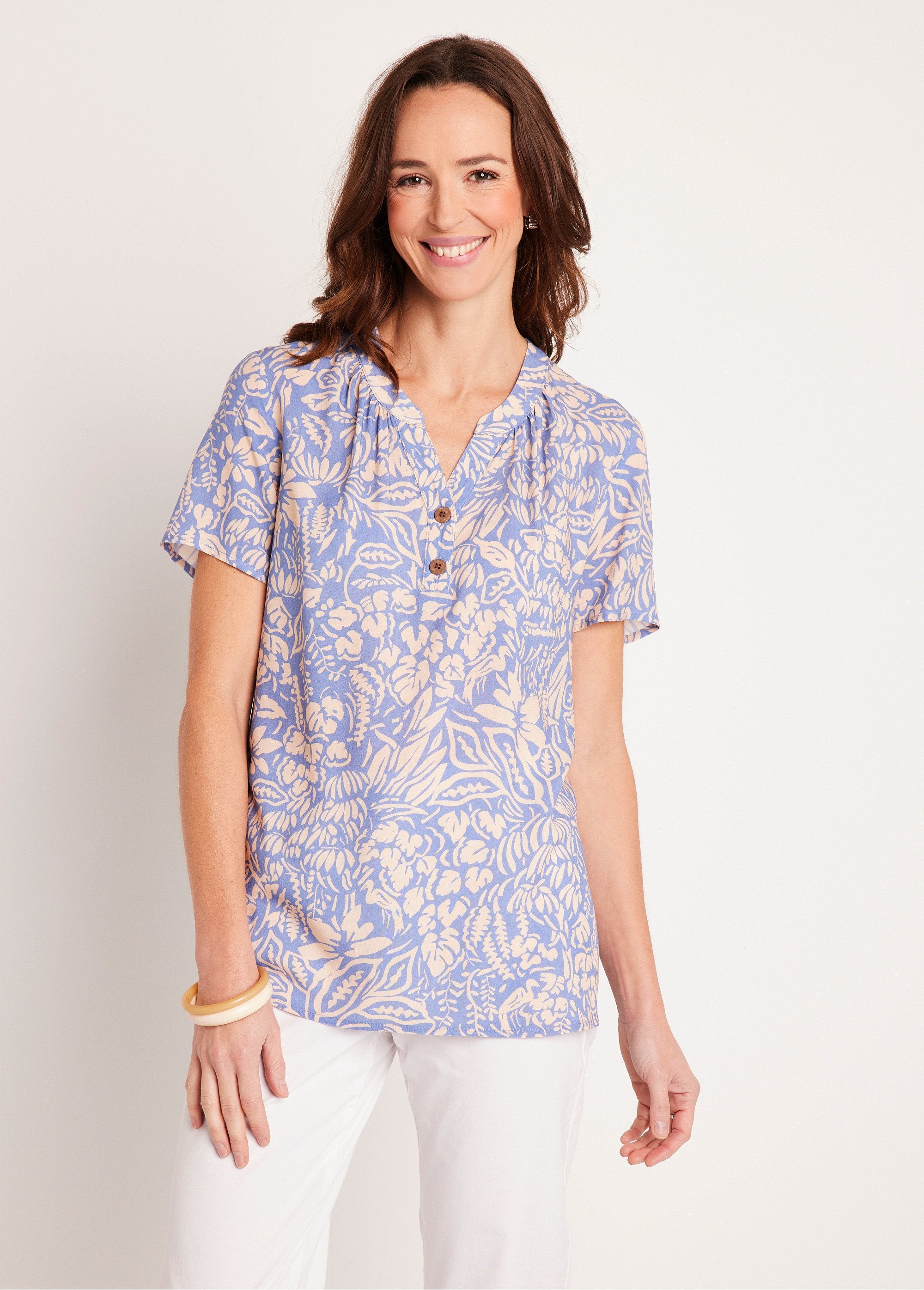 Loose-fitting_tunic_with_3/4-length_sleeves_Blue_and_coral_FA1_curvy Loose-fitting_tunic_with_3/4-length_sleeves_Blue_and_coral_DO1_curvy