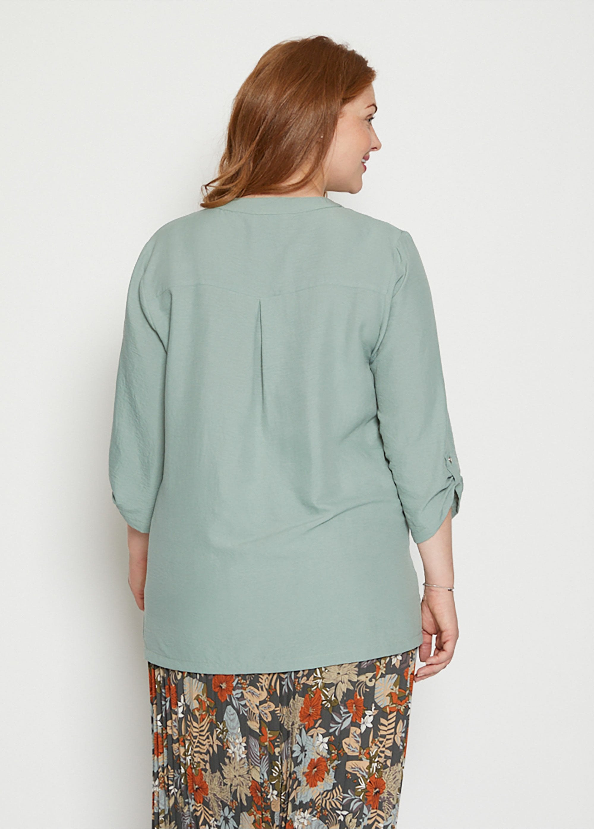 Loose-fitting_button-down_tunic_with_3/4-length_sleeves_Green_FA1_slim Loose-fitting_button-down_tunic_with_3/4-length_sleeves_Green_DO1_slim