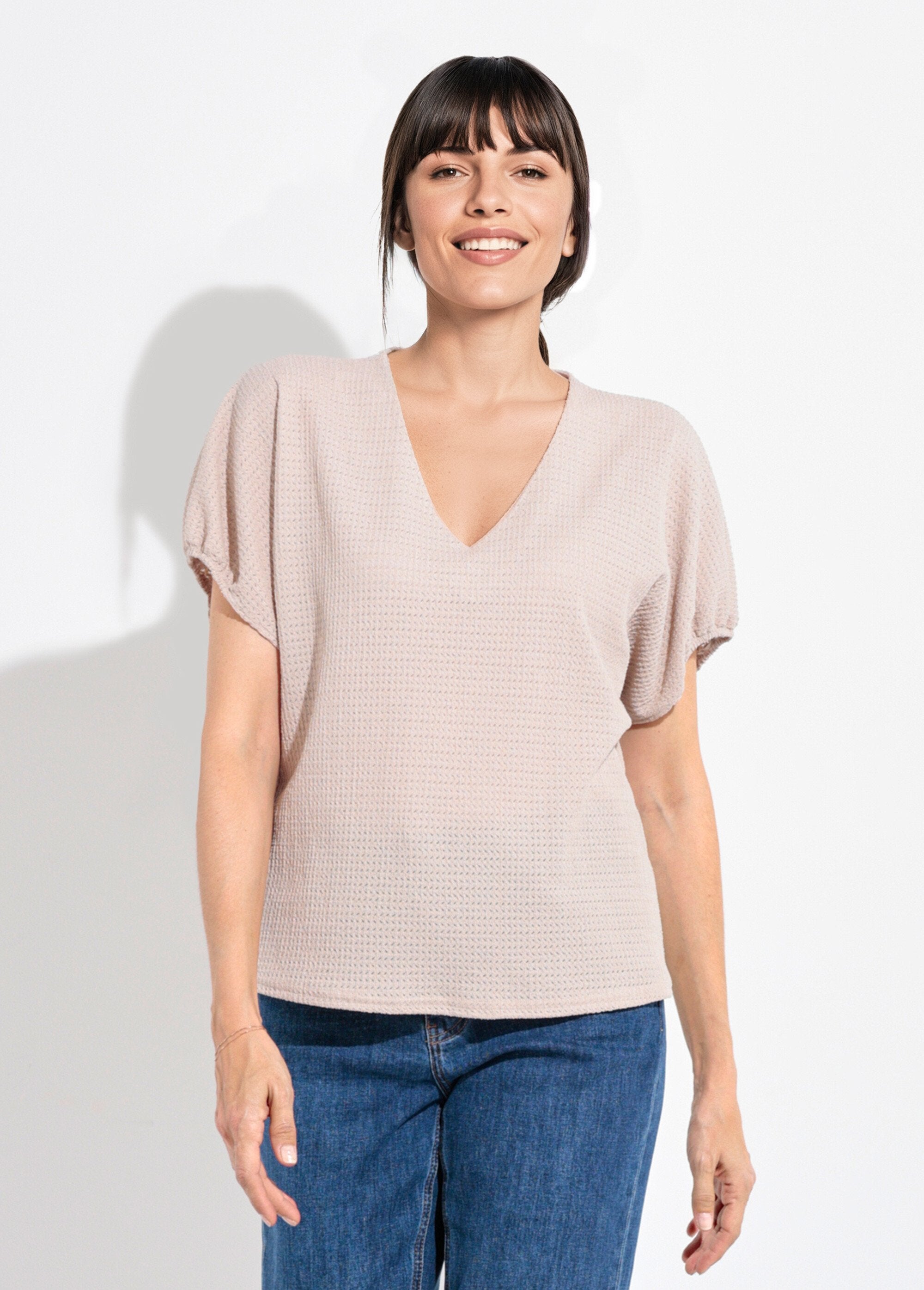 Textured_T-shirt_with_elasticated_sleeves_String_FA1_slim Textured_T-shirt_with_elasticated_sleeves_String_DO1_slim