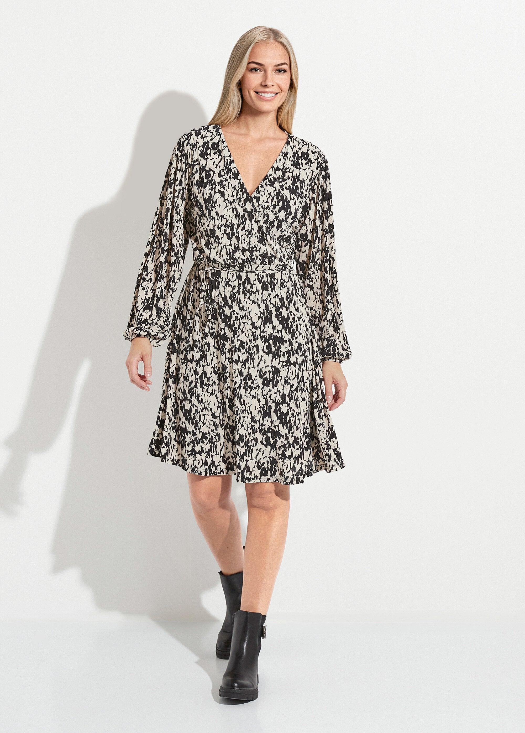 Short_wrap_dress_with_tachiste_print_Black_and_ecru_FA1_slim Short_wrap_dress_with_tachiste_print_Black_and_ecru_DO1_slim