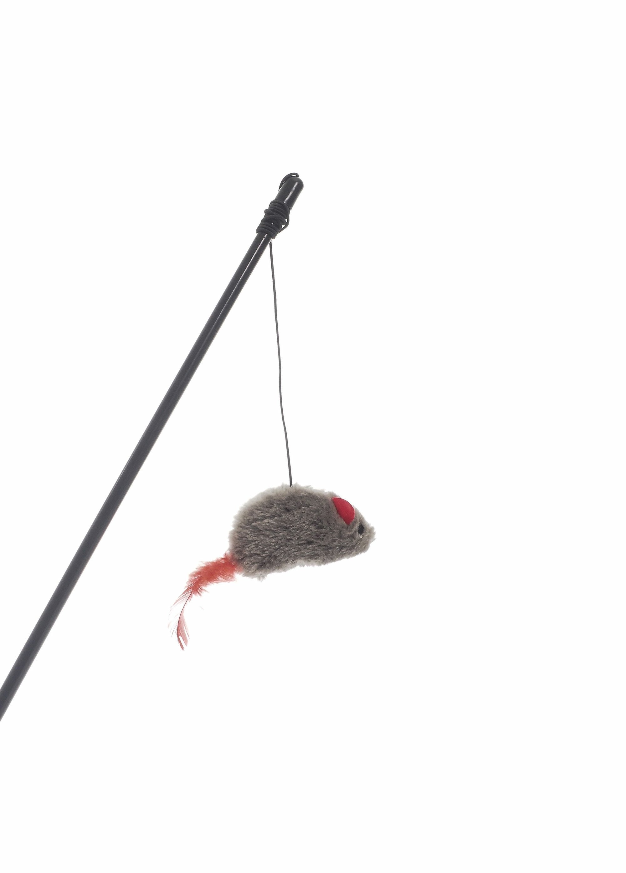 This fishing rod with plush bait imitating a mouse is ideal for keeping your cat active and healthy. Designed to simulate the movements of a fleeing mouse, this toy encourages your feline to hunt and play, while remaining simple to use and accessible to all members of the family. Playful and interactive, it offers precious moments of complicity, strengthening the bond between you and your companion while ensuring its well-being.