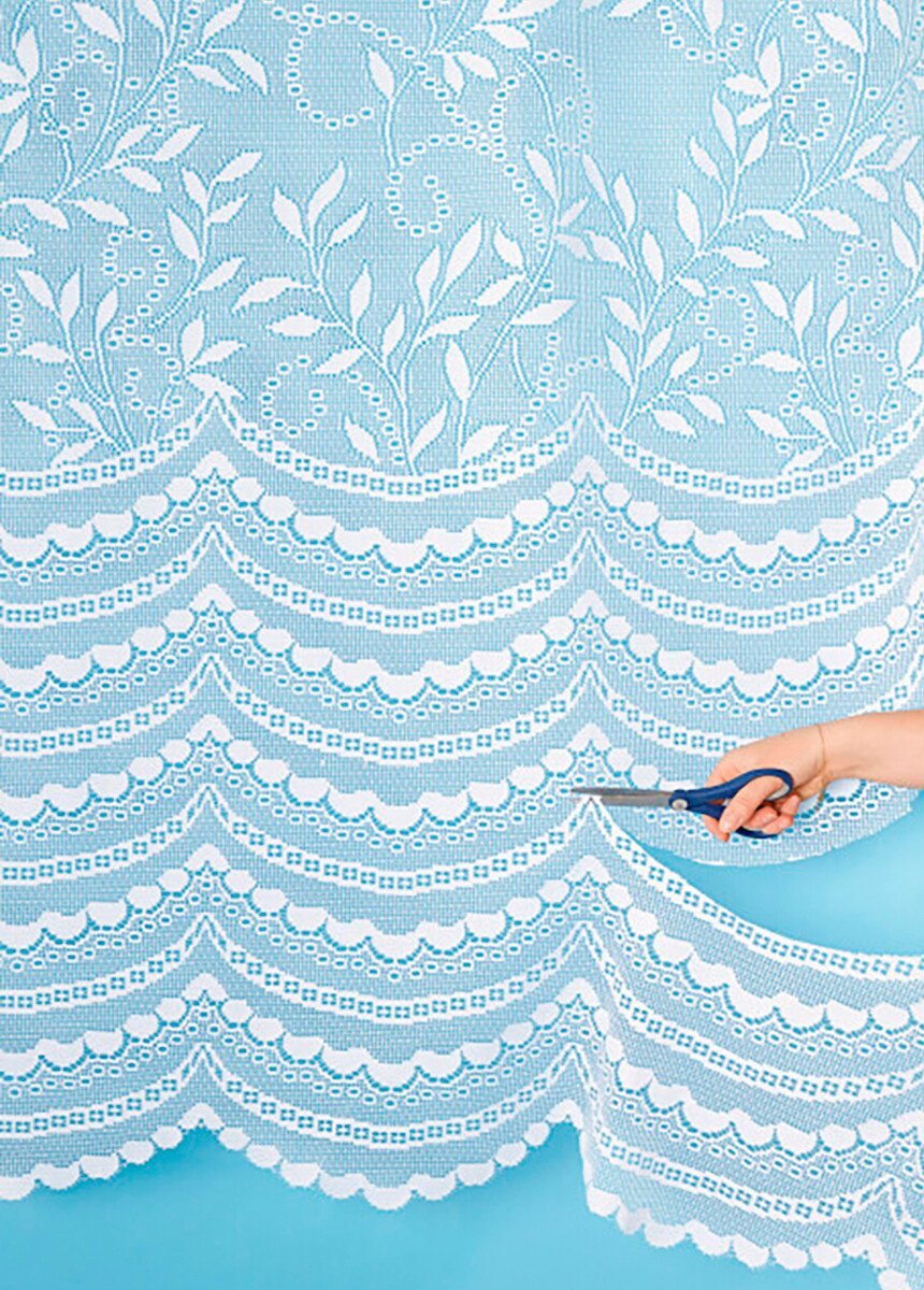 Foliage pattern and adjustable height for a lace panel as elegant as it is clever. With this panel, no more hems: it's easily cut to fit the exact height of the window. Comes ready to hang with gathering tape and hooks.